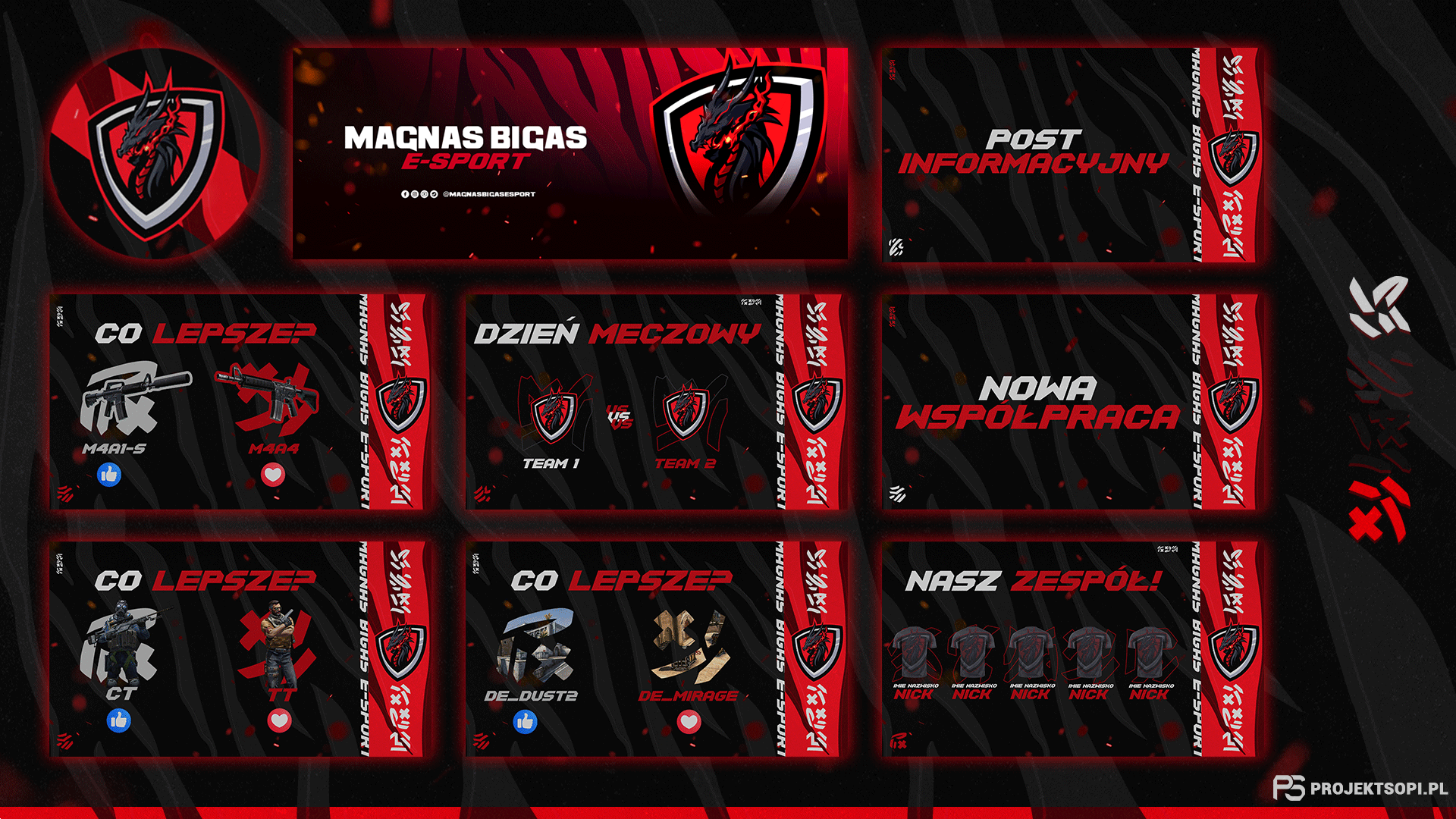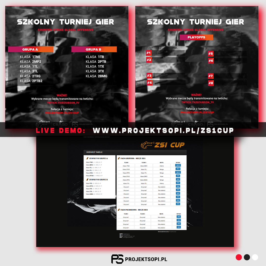 Zestaw grafik na turniej Counter-Strike'a dla szkoły w Wieluniu.